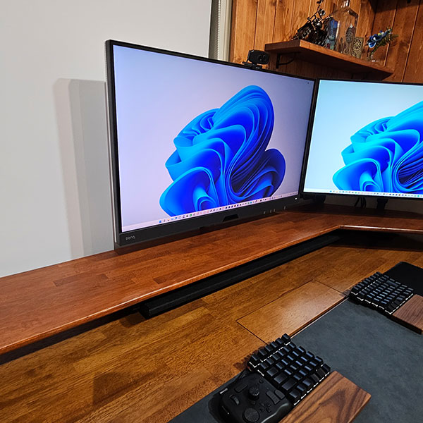 4.昇降式のPCデスク人気の電動昇降脚を取り付けたPCデスク。最近は電動昇降デスクのお写真をお送りいただくことがとても多いです。 |