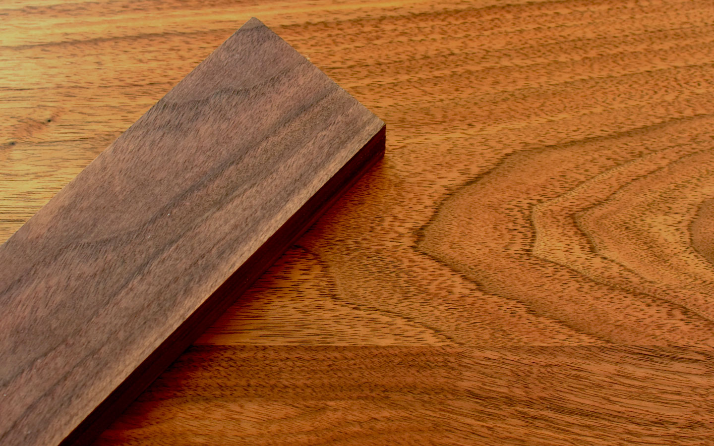 例えばオークであれば国産のナラ材であったり、メープル材であればバーチの白太部分であったりと他の木材であれば表情が似ている木材や近縁種を探せたりしますが、ウォールナット材は木目や色が良く似ている木材はほぼありません。その希少性がウォールナット材を価値づけるひとつの理由でもありますし、その金額を払ってでも手に入れたい人がたくさんいるのが高価格の所以です。