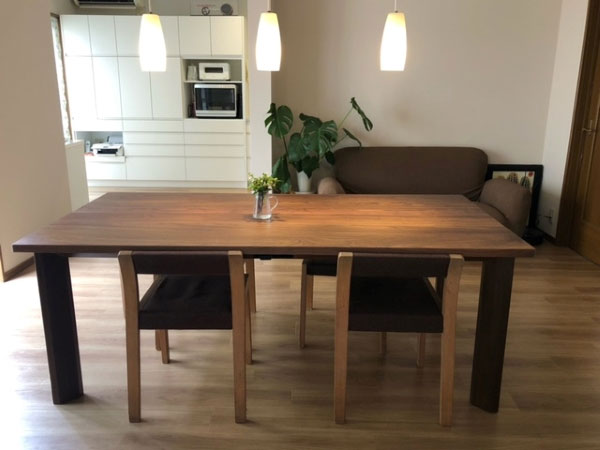 ウォールナットの美しさを最大に楽しむなら、やっぱりおすすめしたいのが天板。シックな美しさは落ち着いたお部屋づくりにぴったりで、インテリアの主役になるテーブルになります。