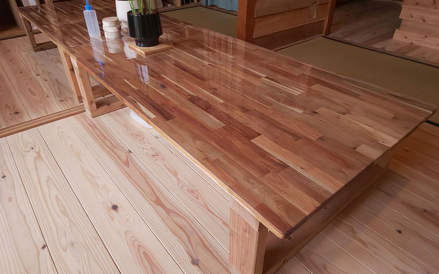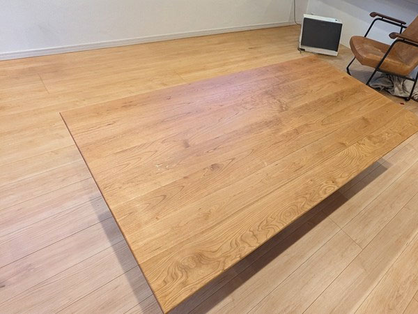 自然塗料のメリットは、気になった時にすぐにメンテナンスできること。少しくらい汚れても、ワックスクリーナー等で拭き取って再塗装すれば木材は美しさを取り戻します。デメリットは水に弱いことなので、食卓など日常的に汚れるような用途の場合には少しくらいの汚れは味と受け入れるか、ウレタン塗装をオーダーするのがおすすめです。