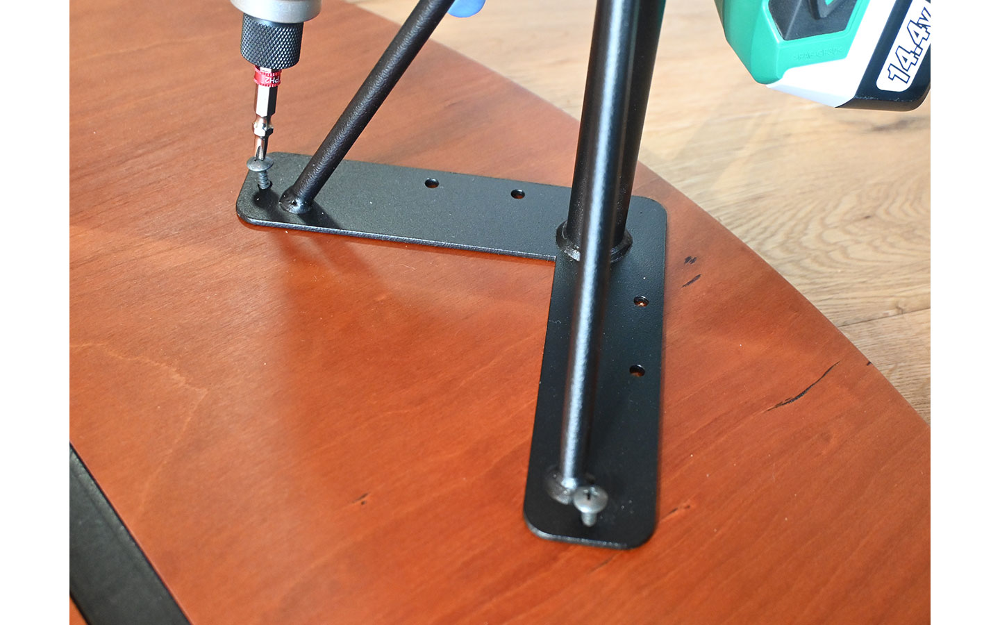 今回は ” 簡単DIY ” をテーマに掲げているので省略しましたが、この時に下穴ではなく鬼目ナットを埋め込むことでノックダウン式(鉄脚をつけ外しできる、いわゆる組立式家具)にすることも出来ます。鬼目ナットの使い方に関しては過去にご紹介しているので、ご興味のある方はご参照ください。場所を指定していただければ、マルトクショップ でのオーダーも可能です。