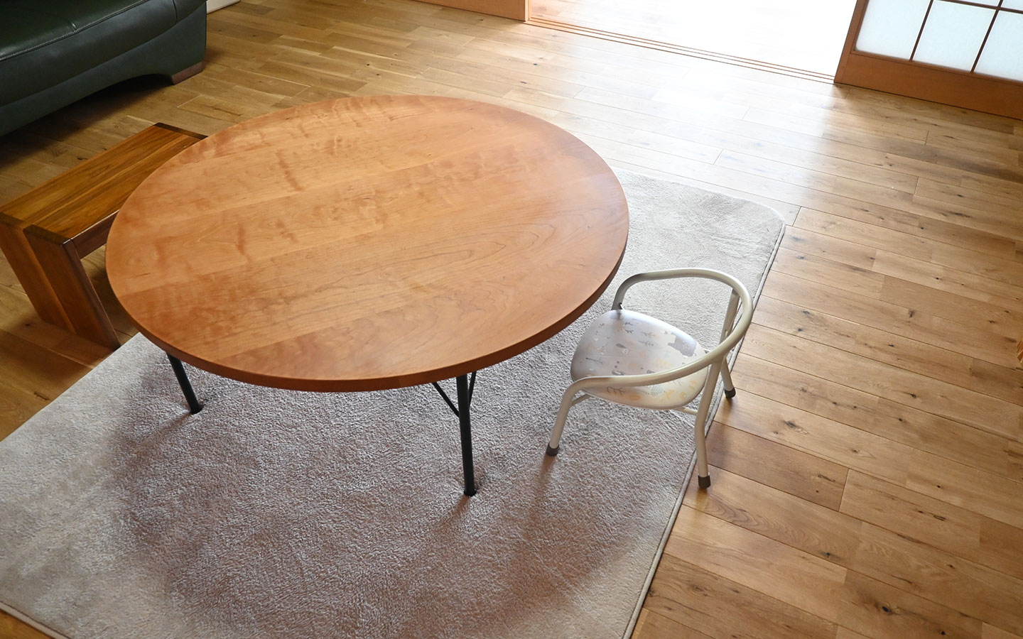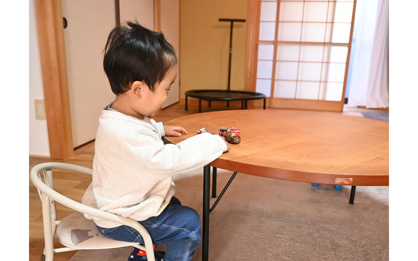 子供自身が何かしたい時に自力で使える、大人も子供もくつろいだ状態で使えるテーブルがあればいいなと考えるようになりました。