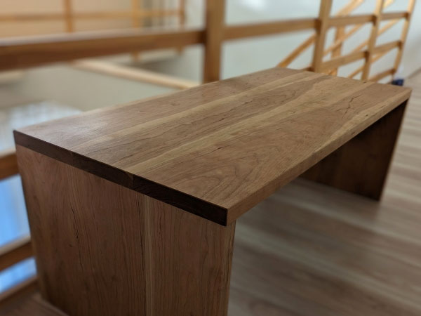 なんと、ブラックチェリーです。サイズもちょうど1000mmと、求めていたサイズにぴったり。きめ細かい木肌がすべすべで、子供が使うには絶対良い!と即決してしまいました。初めて使う樹種なので、とってもワクワクです。