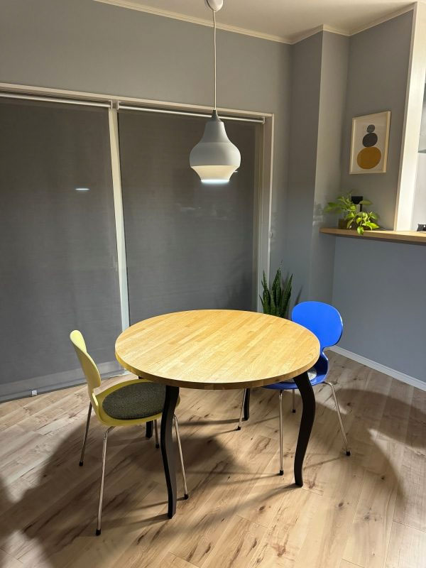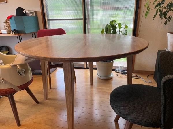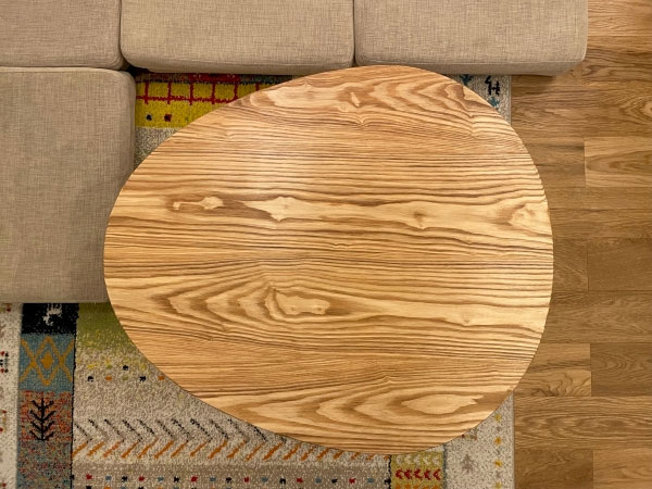子供部屋でメインに使う予定だったので、今回は角が気にならない円形の天板でテーブルを作ってみることにしました。部屋を圧迫したくなかったのでサイズは1000mm前後を目指すことにしました。丸テーブルの1000mmは大人4人までなら使えるサイズ感。子供が大きくなって自立したら、脚を付け替えてカフェテーブルのように使ってもかわいいなと妄想しながら、リユースを考えて小さすぎないものを作ることにしました。