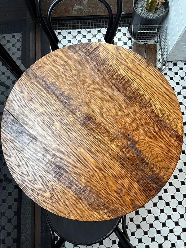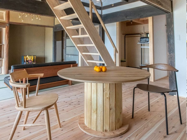 ひっくり返せばそこには一目惚れした天板が!色々な樹種を集めても、全て自然のものだからか自然と馴染んでくれました。私は普段WEBの担当で木材を実際に加工する機会はほとんどありませんが、撮影しながら正味一時間半でDIYを終えることが出来ました。見栄えも途中の片付けも何も気にしなければ、おそらく一時間もかからない簡単DIYです。