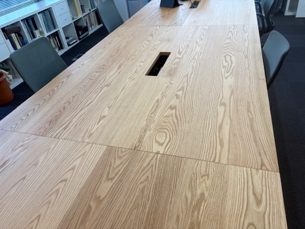 6枚のレッドオークを連結させてフリーデスクテープルを作成しました。