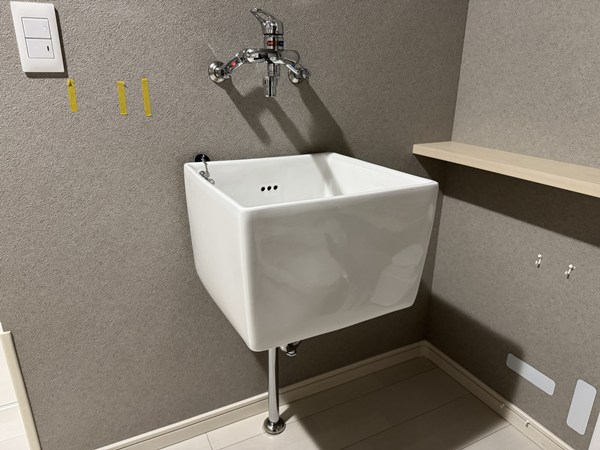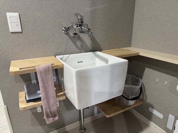 スロップシンクの周りに、DIYで棚を作成しました。