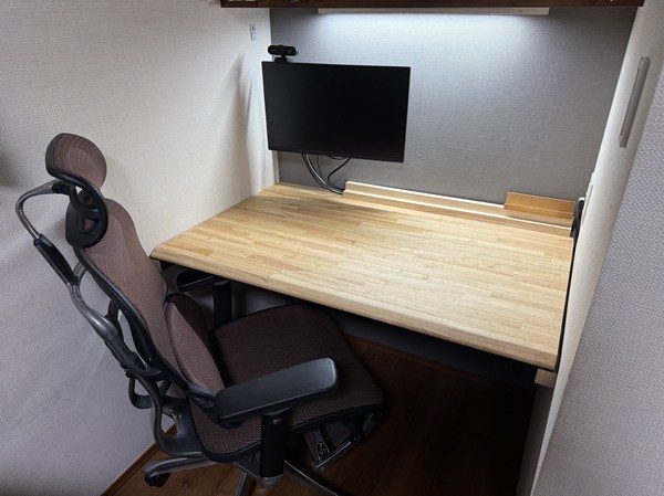 コの字型の机スペースに新しい机を置こうと試行錯誤してました。既製品ではなかなかサイズが決まらなかったり、買った物の実寸さで僅かに入らなかったりしていました。