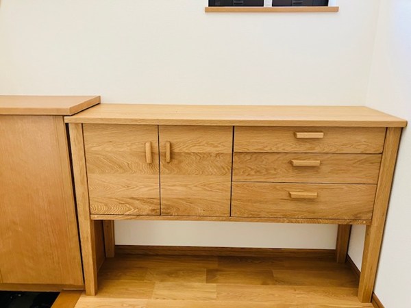 収納の天板の重なるギリギリまでしっかり設計されたキャビネットで、空きスペースの有効活用として素晴らしいです。