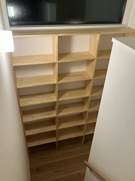 そのスケールと精巧さに感嘆いたしました。 階段の上り下りで毎日目が行く箇所で、大事な本やモノを置くことにより、インテリアとしても非常に素晴らしい仕上がりとお見受けいたします。