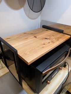 既製品のレンジ台がプリント化粧板で見た目が安っぽかった為、