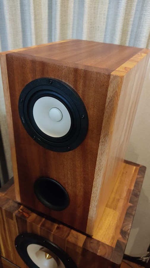 木材の良さを活かしつつ、丁寧に仕上げられている様子がお写真より伝わってまいりました。年月が経ってスピーカーの音がどうかわるのかも興味深いですが、末永くご愛用頂ければと存じ上げます。