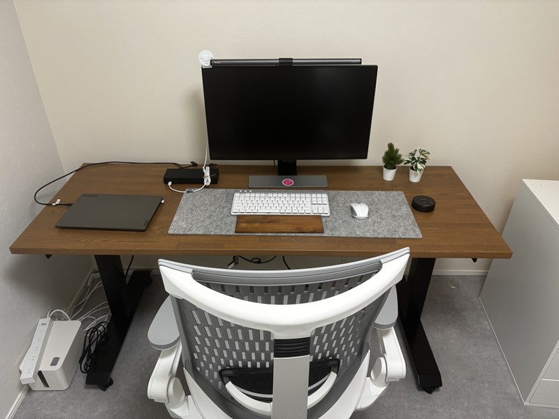 白デスク環境からウォルナット調のデスク環境に変えるべく、電動式昇降デスクの天板用で購入しました。
