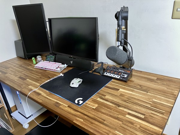 ごちゃごちゃと組み合わせていたPC用の机や台を今回一枚板にまとめました