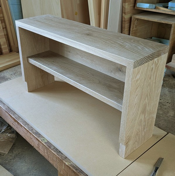 ナラ無垢材を使用した棚付きのサイドテーブルを作成しました。