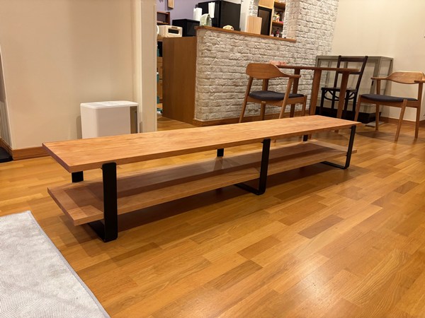 先日送って頂いたチェリーの無垢材が、テレビボードになりましてのでご報告です