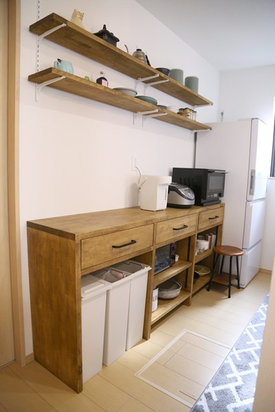大掛かりな作品で、製作も苦労されたと存じ上げますが、機能性と収容性が高く、木材の温かい色合いが、清潔感のあるキッチン空間に大変良く馴染んでいるのも写真から伝わってまいります。